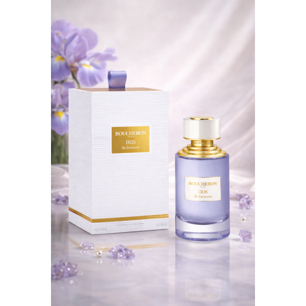Iris SURACUSE de Boucheron ist eine raffinierte olfaktorische Zusammensetzung, die einen sonnigen Spaziergang durch die Irisfelder in Blüte, in der schönen Stadt Syrakus evoziert.